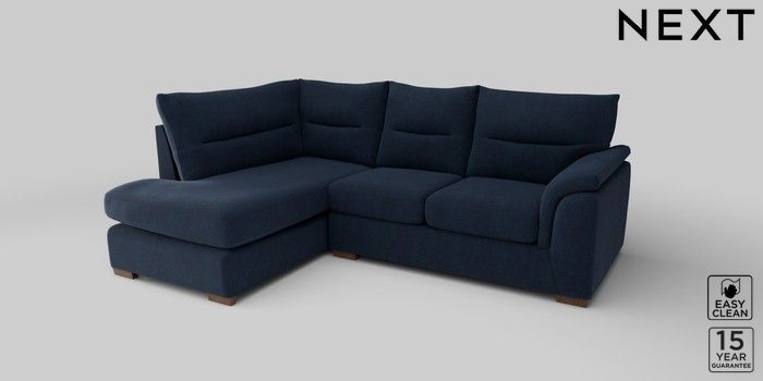 7.2.10 Hayden Highback Medium Corner Chaise - Left Hand Fine Chenille Easy Clean Dark Navy Blue Slim Block - Mid | Made Click here to use our website with more accessibility support, for example screen readers
