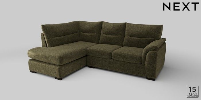 7.2.10 Hayden Highback Medium Corner Chaise - Left Hand Plush Chenille Moss Green Slim Block - Dark | Made Click here to use our website with more accessibility support, for example screen readers