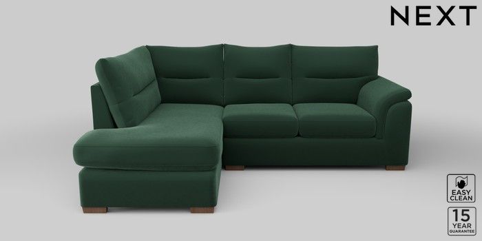 7.2.10 Hayden Highback Medium Corner Chaise - Left Hand Plush Velvet Easy Clean Bottle Green Slim Block - Mid | Made Click here to use our website with more accessibility support, for example screen readers