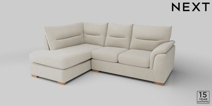 7.2.10 Hayden Highback Medium Corner Chaise - Left Hand Relaxed Linen Look Oyster Slim Block - Light | Made Click here to use our website with more accessibility support, for example screen readers