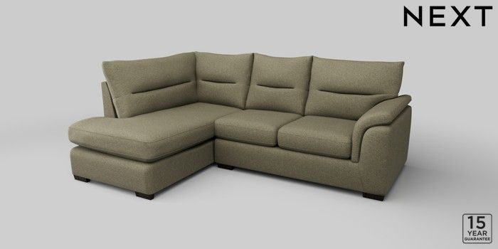 7.2.10 Hayden Highback Medium Corner Chaise - Left Hand Tweedy Chenille Mid Moss Green Slim Block - Dark | Made Click here to use our website with more accessibility support, for example screen readers