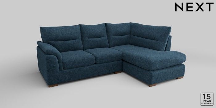 7.2.10 Hayden Highback Medium Corner Chaise - Right Hand Cotswold Chenille Dark Blue Slim Block - Mid | Made Click here to use our website with more accessibility support, for example screen readers