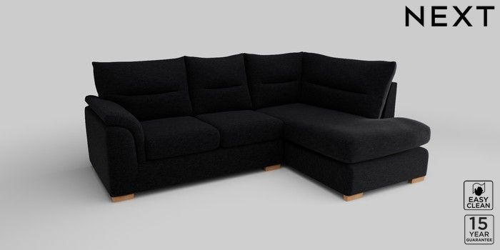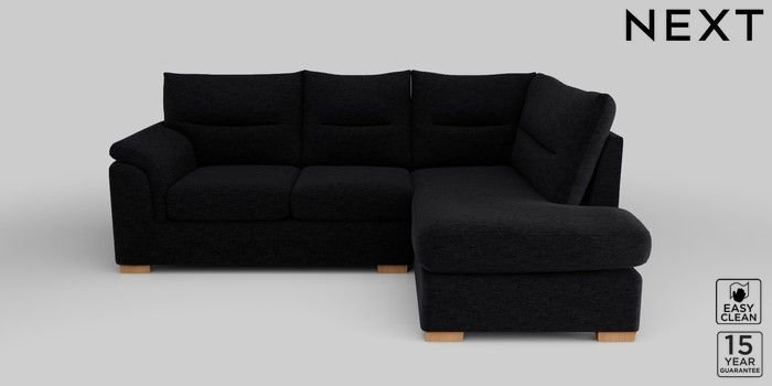 7.2.10 Hayden Highback Medium Corner Chaise - Right Hand Fine Chenille Easy Clean Black Slim Block - Light | Made Click here to use our website with more accessibility support, for example screen readers