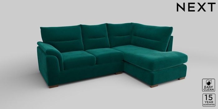 7.2.10 Hayden Highback Medium Corner Chaise - Right Hand Plush Velvet Easy Clean Juniper Green Slim Block - Mid | Made Click here to use our website with more accessibility support, for example screen readers