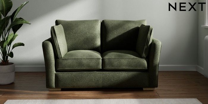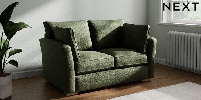 7.2.10 Heath Highback 2 Seater Small Sofa Boucle Chenille Dark Moss Green Block - Light | Made Click here to use our website with more accessibility support, for example screen readers