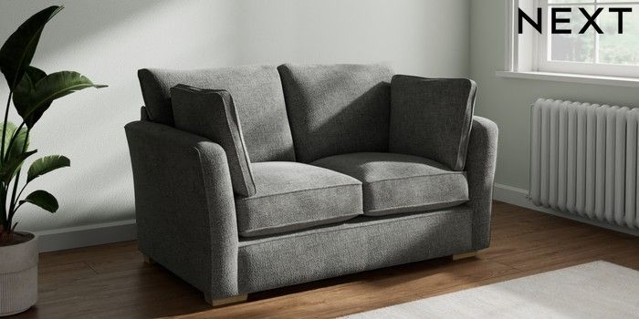 7.2.10 Heath Highback 2 Seater Small Sofa Chunky Chenille Dark Grey Block - Light | Made Click here to use our website with more accessibility support, for example screen readers