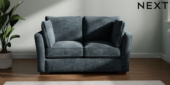 7.2.10 Heath Highback 2 Seater Small Sofa Chunky Chenille Dark Navy Blue Block - Mid | Made Click here to use our website with more accessibility support, for example screen readers