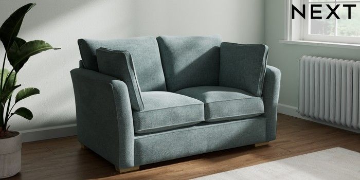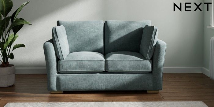 7.2.10 Heath Highback 2 Seater Small Sofa Chunky Chenille Light Teal Green Block - Light | Made Click here to use our website with more accessibility support, for example screen readers