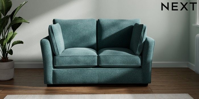 7.2.10 Heath Highback 2 Seater Small Sofa Chunky Chenille Mid Teal Green Block - Dark | Made Click here to use our website with more accessibility support, for example screen readers