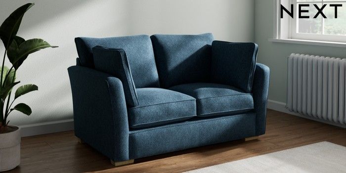 7.2.10 Heath Highback 2 Seater Small Sofa Cotswold Chenille Dark Blue Block - Light | Made Click here to use our website with more accessibility support, for example screen readers