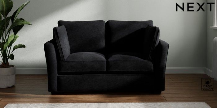 7.2.10 Heath Highback 2 Seater Small Sofa Fine Chenille Easy Clean Black Block - Dark | Made Click here to use our website with more accessibility support, for example screen readers