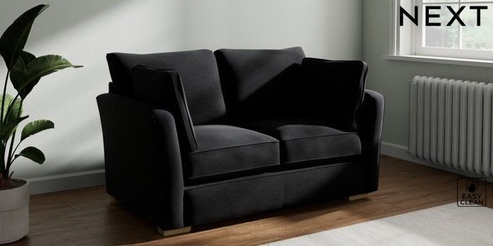 7.2.10 Heath Highback 2 Seater Small Sofa Fine Chenille Easy Clean Black Block - Light | Made Click here to use our website with more accessibility support, for example screen readers