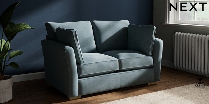 7.2.10 Heath Highback 2 Seater Small Sofa Fine Chenille Easy Clean Mid Blue Block - Light | Made Click here to use our website with more accessibility support, for example screen readers