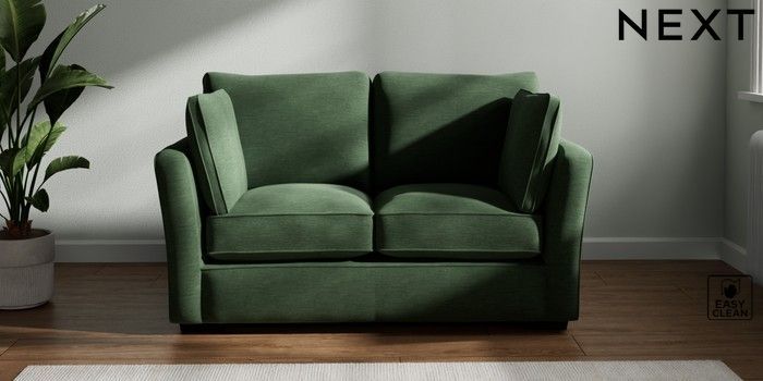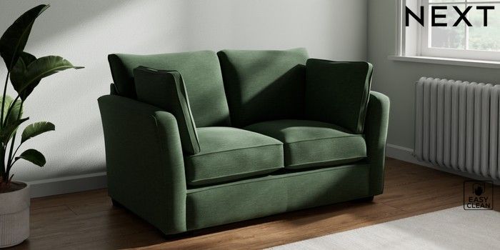 7.2.10 Heath Highback 2 Seater Small Sofa Fine Chenille Easy Clean Mid Khaki Green Block - Dark | Made Click here to use our website with more accessibility support, for example screen readers