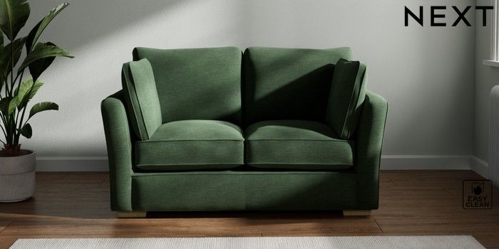 7.2.10 Heath Highback 2 Seater Small Sofa Fine Chenille Easy Clean Mid Khaki Green Block - Light | Made Click here to use our website with more accessibility support, for example screen readers