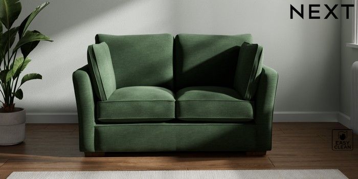 7.2.10 Heath Highback 2 Seater Small Sofa Fine Chenille Easy Clean Mid Khaki Green Block - Mid | Made Click here to use our website with more accessibility support, for example screen readers