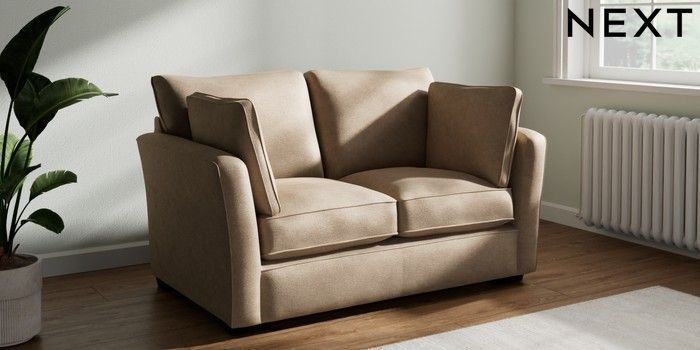 7.2.10 Heath Highback 2 Seater Small Sofa Luxe Chenille Mid Camel Beige Block - Dark | Made Click here to use our website with more accessibility support, for example screen readers