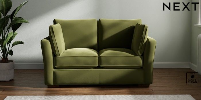 7.2.10 Heath Highback 2 Seater Small Sofa Plush Velvet Easy Clean Mid Olive Green Block - Mid | Made Click here to use our website with more accessibility support, for example screen readers