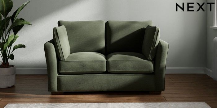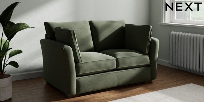 7.2.10 Heath Highback 2 Seater Small Sofa Relaxed Linen Look Dark Green Block - Mid | Made Click here to use our website with more accessibility support, for example screen readers