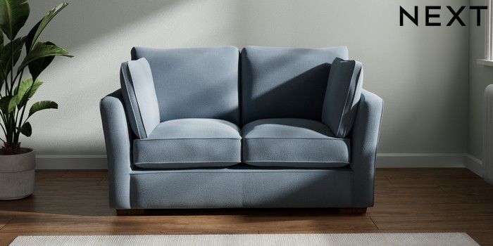 7.2.10 Heath Highback 2 Seater Small Sofa Relaxed Linen Look Mid Blue Block - Mid | Made Click here to use our website with more accessibility support, for example screen readers