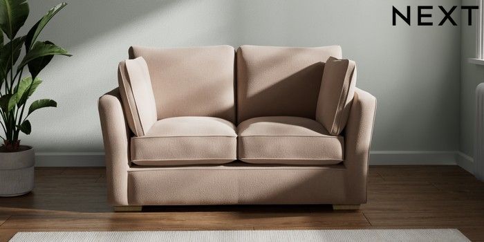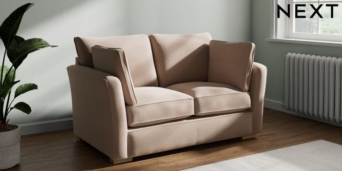 7.2.10 Heath Highback 2 Seater Small Sofa Relaxed Linen Look Mid Natural Block - Light | Made Click here to use our website with more accessibility support, for example screen readers