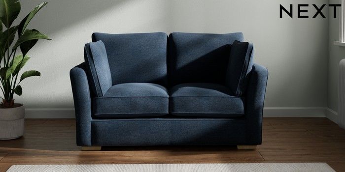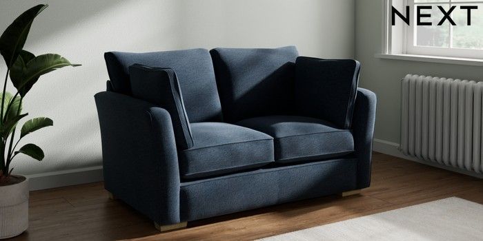 7.2.10 Heath Highback 2 Seater Small Sofa Ripple Chenille Dark Blue Block - Light | Made Click here to use our website with more accessibility support, for example screen readers