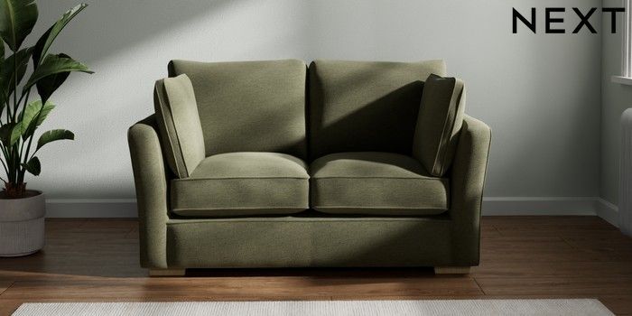 7.2.10 Heath Highback 2 Seater Small Sofa Ripple Chenille Mid Moss Green Block - Light | Made Click here to use our website with more accessibility support, for example screen readers