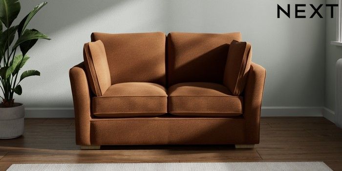 7.2.10 Heath Highback 2 Seater Small Sofa Ripple Chenille Mid Rust Brown Block - Light | Made Click here to use our website with more accessibility support, for example screen readers