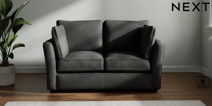 7.2.10 Heath Highback 2 Seater Small Sofa Tweedy Blend Easy Clean Charcoal Grey Block - Dark | Made Click here to use our website with more accessibility support, for example screen readers