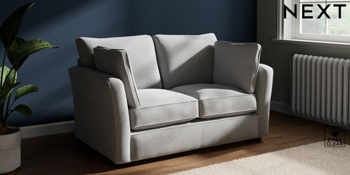 7.2.10 Heath Highback 2 Seater Small Sofa Tweedy Blend Easy Clean Light Silver Grey Block - Dark | Made Click here to use our website with more accessibility support, for example screen readers