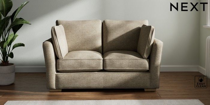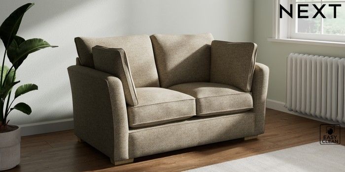 7.2.10 Heath Highback 2 Seater Small Sofa Woven Chenille Easy Clean Mid Natural Block - Light | Made Click here to use our website with more accessibility support, for example screen readers