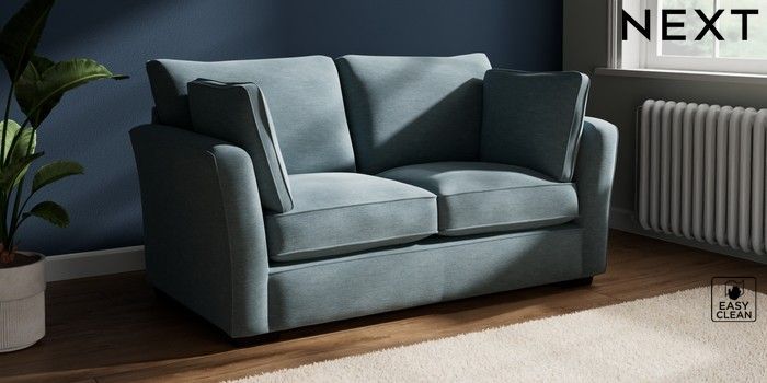 7.2.10 Heath Highback 2 Seater Sofa Fine Chenille Easy Clean Mid Blue Block - Dark | Made Click here to use our website with more accessibility support, for example screen readers