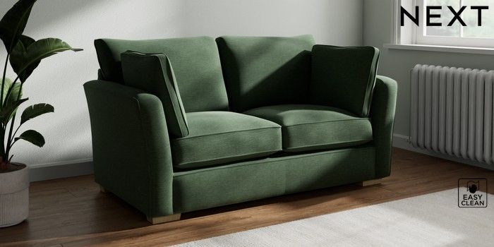7.2.10 Heath Highback 2 Seater Sofa Fine Chenille Easy Clean Mid Khaki Green Block - Light | Made Click here to use our website with more accessibility support, for example screen readers