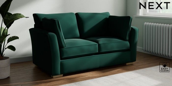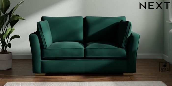 7.2.10 Heath Highback 2 Seater Sofa Plush Velvet Easy Clean Bottle Green Block - Light | Made Click here to use our website with more accessibility support, for example screen readers