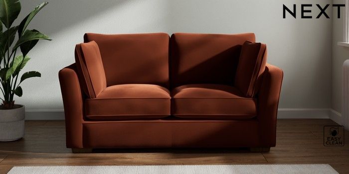7.2.10 Heath Highback 2 Seater Sofa Plush Velvet Easy Clean Ginger Orange Block - Mid | Made Click here to use our website with more accessibility support, for example screen readers