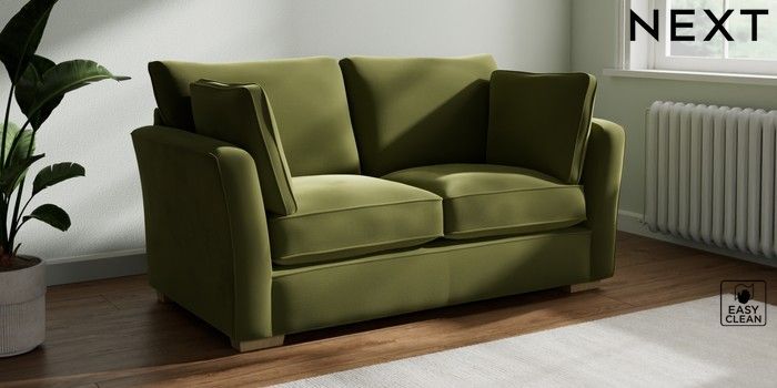 7.2.10 Heath Highback 2 Seater Sofa Plush Velvet Easy Clean Mid Olive Green Block - Light | Made Click here to use our website with more accessibility support, for example screen readers