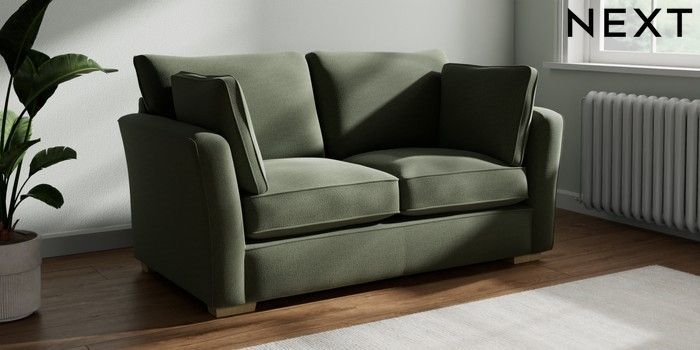 7.2.10 Heath Highback 2 Seater Sofa Relaxed Linen Look Dark Green Block - Light | Made Click here to use our website with more accessibility support, for example screen readers
