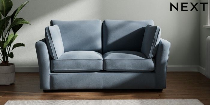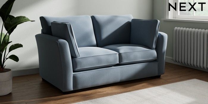 7.2.10 Heath Highback 2 Seater Sofa Relaxed Linen Look Mid Blue Block - Dark | Made Click here to use our website with more accessibility support, for example screen readers