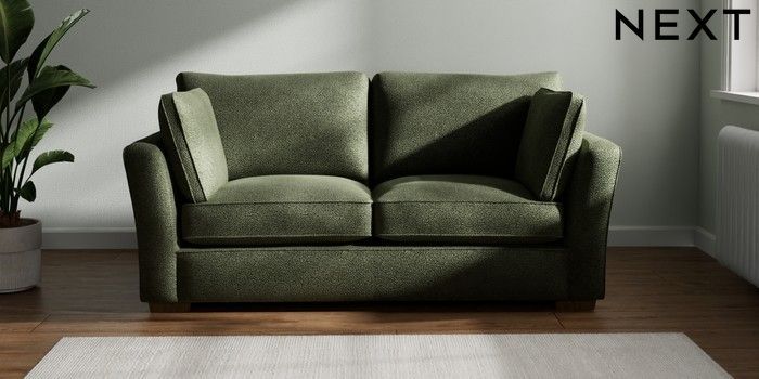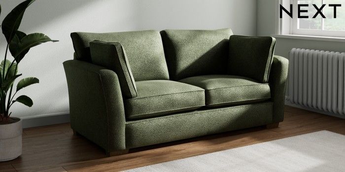 7.2.10 Heath Highback 3 Seater Small Sofa Boucle Chenille Dark Moss Green Block - Mid | Made Click here to use our website with more accessibility support, for example screen readers