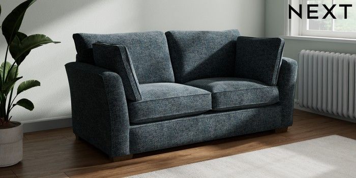 7.2.10 Heath Highback 3 Seater Small Sofa Chunky Chenille Dark Navy Blue Block - Mid | Made Click here to use our website with more accessibility support, for example screen readers