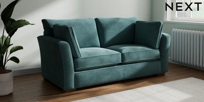 7.2.10 Heath Highback 3 Seater Small Sofa Chunky Chenille Mid Teal Green Block - Mid | Made Click here to use our website with more accessibility support, for example screen readers
