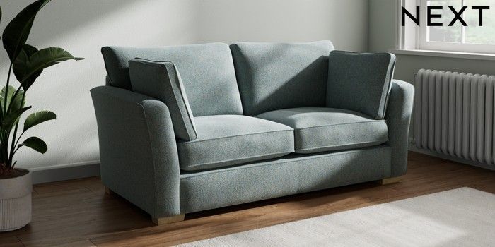 7.2.10 Heath Highback 3 Seater Small Sofa Chunky Marl Mid Blue Block - Light | Made Click here to use our website with more accessibility support, for example screen readers