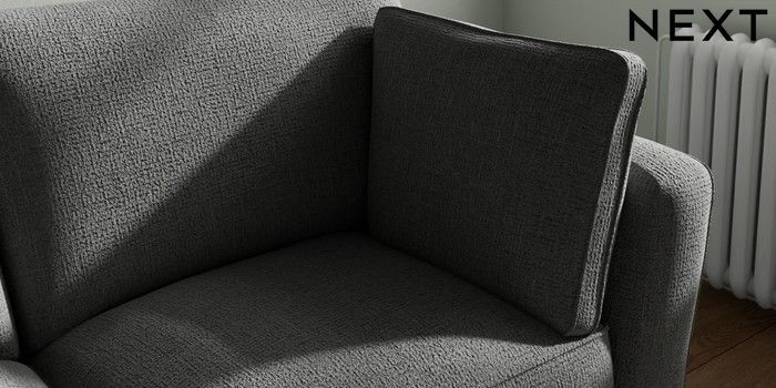 7.2.10 Heath Highback 3 Seater Small Sofa Chunky Texture Dark Grey Block - Light | Made Click here to use our website with more accessibility support, for example screen readers