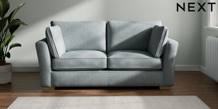 7.2.10 Heath Highback 3 Seater Small Sofa Chunky Weave Mid Blue Block - Light | Made Click here to use our website with more accessibility support, for example screen readers