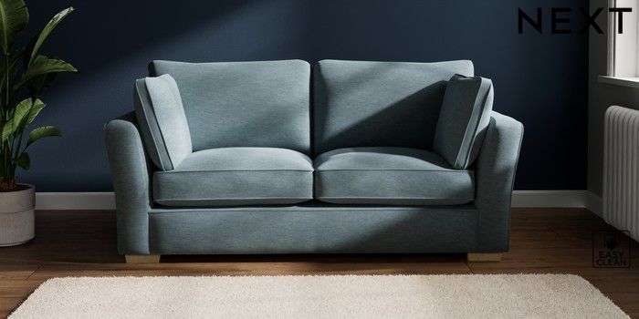 7.2.10 Heath Highback 3 Seater Small Sofa Fine Chenille Easy Clean Mid Blue Block - Light | Made Click here to use our website with more accessibility support, for example screen readers