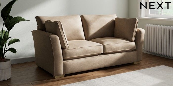 7.2.10 Heath Highback 3 Seater Small Sofa Luxe Chenille Mid Camel Beige Block - Light | Made Click here to use our website with more accessibility support, for example screen readers