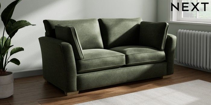 7.2.10 Heath Highback 3 Seater Small Sofa Luxe Chenille Mid Green Block - Light | Made Click here to use our website with more accessibility support, for example screen readers