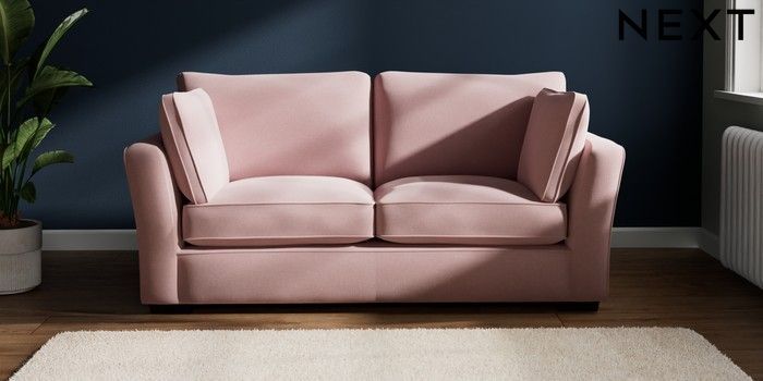 7.2.10 Heath Highback 3 Seater Small Sofa Natural Mix Light Rose Pink Block - Dark | Made Click here to use our website with more accessibility support, for example screen readers