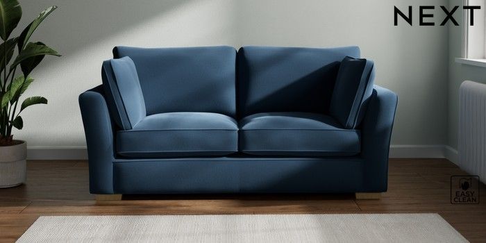 7.2.10 Heath Highback 3 Seater Small Sofa Plush Velvet Easy Clean Airforce Blue Block - Light | Made Click here to use our website with more accessibility support, for example screen readers