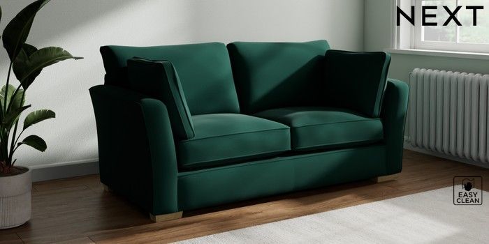 7.2.10 Heath Highback 3 Seater Small Sofa Plush Velvet Easy Clean Bottle Green Block - Light | Made Click here to use our website with more accessibility support, for example screen readers
